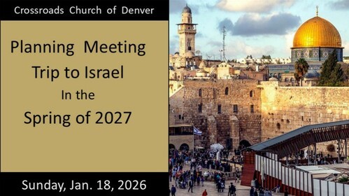 Join us for an interest meeting on Sunday, January 18, 2026, in the Prayer Room as we begin planning an exciting spring 2027 trip to Israel. We will meet immediately following both services (10:45am and 12:30pm). See Pastor Adam for more information.