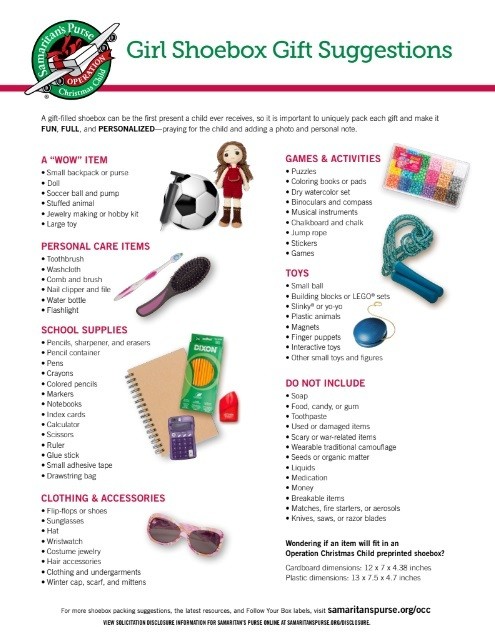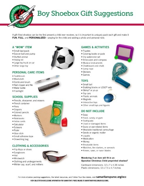 HERE ARE SUGGESTIONS FOR YOUR 2025 SHOEBOX GIFTS
