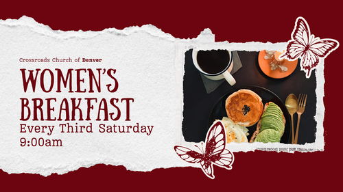 Join the women of Crossroads for their monthly breakfast. We meet on the first Saturday of the month at 9:00am in the Martha room for a time of prayer, worship, food, fellowship and a testimony. This is a potluck, so please bring a dish to share.